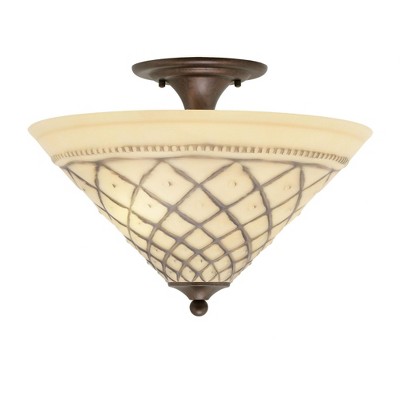 Collection: Any, Material: Steel, Finish Color: Bronze, Width: 12", Height: 11.25", Lamping Type: Incandescent, Number Of Bulbs: 2, Wattage: 60 Watts, Dimmable: No, Moisture Rating: Dry Rated Desc: Semi-Flush With 2 Bulbs Shown In Black Copper Finish With 12" Italian Bubble Glass, Material: Steel, Finish Color: Bronze, Width: 12", Height: 11.25", Lamping Type: Incandescent, Number Of Bulbs: 2, Wattage: 60 Watts, Dimmable: No, Moisture Rating: Dry Rated-Any - 2 Light Semi-Flush Mount-11.25 Inches Tall and 12 Inches Wide-Bronze Finish-Chocolate Icing Glass Color