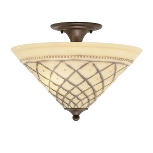 Collection: Any, Material: Steel, Finish Color: Bronze, Width: 16", Height: 12.75", Lamping Type: Incandescent, Number Of Bulbs: 2, Wattage: 60 Watts, Dimmable: No, Moisture Rating: Dry Rated Desc: Semi-Flush With 2 Bulbs Shown In Black Copper Finish With 16" Italian Bubble Glass, Material: Steel, Finish Color: Bronze, Width: 16", Height: 12.75", Lamping Type: Incandescent, Number Of Bulbs: 2, Wattage: 60 Watts, Dimmable: No, Moisture Rating: Dry Rated-Any - 2 Light Semi-Flush Mount-12.75 Inches Tall and 16 Inches Wide-Bronze Finish-Chocolate Icing Glass Color