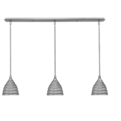 Collection: Any, Material: Steel, Finish Color: Brushed Nickel, Width: 6", Height: 8.25", Length: 26", Lamping Type: Incandescent, Number Of Bulbs: 3, Wattage: 100 Watts, Dimmable: No, Moisture Rating: Dry Rated, Desc: 3 Light Linear Pendalier With Hang Straight Swivels Shown In Brushed Nickel Finish With 6" Brushed Nickel Cone Metal Shade,-Any - 3 Light Linear Pendalier-8.25 Inches Tall and 6 Inches Wide