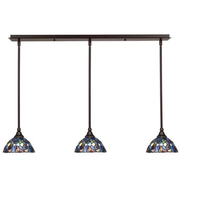 Collection: Any, Material: Steel, Finish Color: Dark Granite, Width: 16", Height: 10.5", Length: 60", Lamping Type: Incandescent, Number Of Bulbs: 3, Wattage: 150 Watts, Dimmable: No, Moisture Rating: Dry Rated Desc: 3 Light Linear Pendalier With Hang Straight Swivels Shown In Brushed Nickel Finish With 16" Blue Mosaic Art Glass, Material: Steel, Finish Color: Dark Granite, Width: 16", Height: 10.5", Length: 60", Lamping Type: Incandescent, Number Of Bulbs: 3, Wattage: 150 Watts, Dimmable: No, Moisture Rating: Dry Rated-Any - 3 Light Linear Pendalier-10.5 Inches Tall and 16 Inches Wide-Dark Granite Finish-Blue Mosaic Art Glass Color