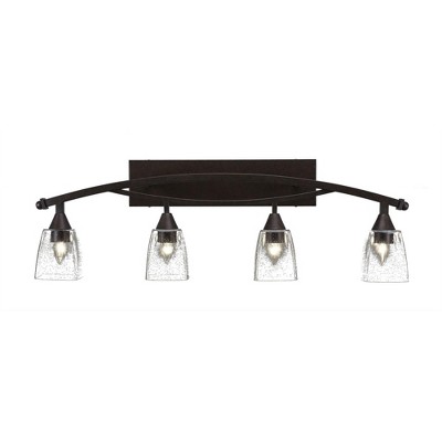 Collection: Bow, Material: Steel, Finish Color: Bronze, Height: 13", Length: 37.25", Depth: 8", Backplate Width: 20", Backplate Length: 5", Lamping Type: Incandescent, Number Of Bulbs: 4, Wattage: 100 Watts, Dimmable: No, Moisture Rating: Damp Rated, Desc: Bow 4 Light Bath Bar Shown In Black Copper Finish With 4" Clear Bubble Glass,-Bow - 4 Light Bath Bar-13 Inches Tall and Inches Wide-Bronze Finish-White Muslin Glass Color