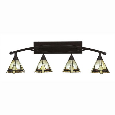 Toltec Lighting Bow 4 - Light Vanity in Bronze with 7" Sea Ice Art Glass Shade