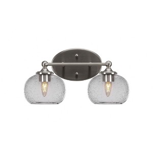 Collection: Capri, Material: Steel, Finish Color: Brushed Nickel, Height: 8.75", Length: 15.75", Depth: 8", Backplate Width: 5", Backplate Length: 7.75", Lamping Type: Incandescent, Number Of Bulbs: 2, Wattage: 100 Watts, Moisture Rating: Damp Rated, Desc: Capri 2 Light Bath Bar Shown In Brushed Nickel Finish With 7 inches Clear Bubble Glass,-Capri - 2 Light Bath Bar-8.75 Inches Tall and 15.75 Inches Length-Brushed Nickel Finish-Clear Bubble Glass Color
