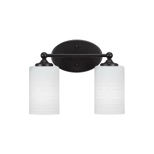 Collection: Capri, Material: Steel, Finish Color: Matte Black, Height: 9.25", Length: 13.75", Depth: 7", Backplate Width: 5", Backplate Length: 7.75", Lamping Type: Incandescent, Number Of Bulbs: 2, Wattage: 100 Watts, Moisture Rating: Damp Rated, Desc: Capri 2 Light Bath Bar Shown In Brushed Nickel Finish With 5 inches White Linen Glass,-Capri - 2 Light Bath Bar-9.25 Inches Tall and 13.75 Inches Length-Matte Black Finish-White Matrix Glass Color-Alternate Shade Product Features