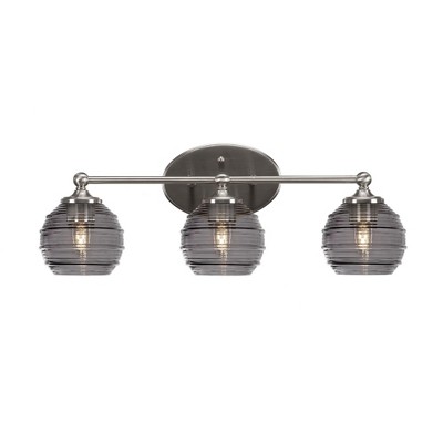 Collection: Capri, Material: Steel, Finish Color: Brushed Nickel, Height: 9.75", Length: 21", Depth: 7", Backplate Width: 5", Backplate Length: 7.75", Lamping Type: Incandescent, Number Of Bulbs: 3, Wattage: 100 Watts, Moisture Rating: Damp Rated, Desc: Capri 3 Light Bath Bar Shown In Brushed Nickel Finish With 4 inches Clear Bubble Glass,-Capri - 3 Light Bath Bar-9.75 Inches Tall and 21 Inches Length-Brushed Nickel Finish-White Marble Glass Color