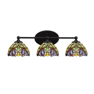 Toltec Lighting Capri 3 - Light Vanity in Matte Black with 7" Lynx Art Glass Shade
