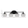 Toltec Lighting Capri 4 - Light Vanity in Matte Black with 7" Clear Bubble Shade