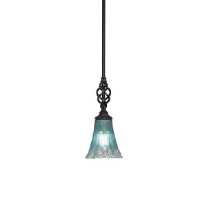 Collection: Elegante, Material: Steel, Finish Color: Matte Black, Width: 5.5", Height: 12", Lamping Type: Incandescent, Number Of Bulbs: 1, Dimmable: No, Moisture Rating: Dry Rated Desc: Elegante Mini Pendant With Hang Straight Swivel Shown In Matte Black Finish With 10" Clear Bubble Glass, Material: Steel, Finish Color: Matte Black, Width: 5.5", Height: 12", Lamping Type: Incandescent, Number Of Bulbs: 1, Dimmable: No, Moisture Rating: Dry Rated-Elegante - 1 Light Mini Pendant With Hang Straight Swivel-12 Inches Tall and 5.5 Inches Wide-Matte Black Finish-Fluted Teal Crystal Glass Color
