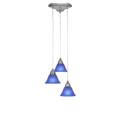Collection: Europa, Material: Steel, Finish Color: Brushed Nickel, Width: 11.25", Height: 13.5", Lamping Type: Incandescent, Number Of Bulbs: 3, Wattage: 100 Watts, Dimmable: No, Moisture Rating: Dry Rated Desc: Europa 3 Light Cluster Pendalier Shown In Brushed Nickel Finish With 5.5" Natural Fusion Glass, Material: Steel, Finish Color: Brushed Nickel, Width: 11.25", Height: 13.5", Lamping Type: Incandescent, Number Of Bulbs: 3, Wattage: 100 Watts, Dimmable: No, Moisture Rating: Dry Rated-Europa - 3 Light Cluster Pendalier-13.5 Inches Tall and 11.25 Inches Wide-Brushed Nickel Finish-Turquoise Fusion Glass Color