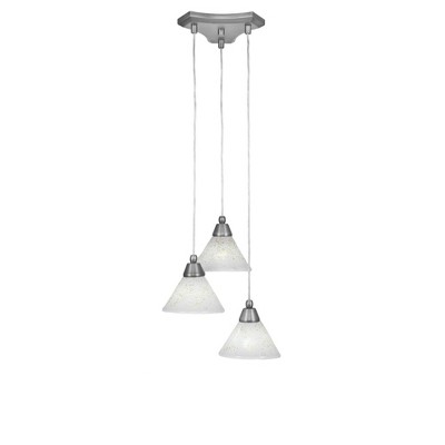 Collection: Europa, Material: Steel, Finish Color: Brushed Nickel, Width: 10.5", Height: 9.25", Lamping Type: Incandescent, Number Of Bulbs: 3, Wattage: 100 Watts, Dimmable: No, Moisture Rating: Dry Rated Desc: Europa 3 Light Cluster Pendalier Shown In Brushed Nickel Finish With 5" Brushed Nickel Oval Metal Shade, Material: Steel, Finish Color: Brushed Nickel, Width: 10.5", Height: 9.25", Lamping Type: Incandescent, Number Of Bulbs: 3, Wattage: 100 Watts, Dimmable: No, Moisture Rating: Dry Rated-Europa - 3 Light Cluster Pendalier-9.25 Inches Tall and 10.5 Inches Wide-Brushed Nickel Finish