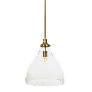 Toltec Lighting Juno 1 - Light Pendant in New Aged Brass with 16" Clear Bubble Shade