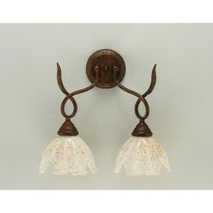 Collection: Leaf, Material: Glass, Finish Color: Bronze, Width: 7.5", Height: 15", Length: 16", Backplate Width: 1", Backplate Length: 5", Lamping Type: Incandescent, Number Of Bulbs: 2, Wattage: 100 Watts, Dimmable: No, Moisture Rating: Damp Rated, Desc: Shade Included. / IS THIS A CHAIN HUNG FIXTURE?: No / Warranty: 1 Year / Assembly Required: Yes. Back Plate Height: 5.00 / Back Plate Width: 1.00 / Shade Included: Yes / Shade Dimensions: 7. ,-Leaf - 2 Light Wall Sconce-15 Inches Tall and 7.5 Inches Wide-Bronze Finish-Gold Ice Glass Color