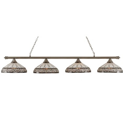 Collection: Oxford, Material: Steel, Finish Color: Brushed Nickel, Width: 16", Height: 12.5", Length: 76", Chain Length: 120", Lamping Type: Incandescent, Number Of Bulbs: 4, Wattage: 150 Watts, Dimmable: No, Moisture Rating: Dry Rated Desc: Oxford 4 Light Bar Shown In Brushed Nickel Finish With 16" Pewter Art Glass, Material: Steel, Finish Color: Brushed Nickel, Width: 16", Height: 12.5", Length: 76", Chain Length: 120", Lamping Type: Incandescent, Number Of Bulbs: 4, Wattage: 150 Watts, Dimmable: No, Moisture Rating: Dry Rated-Oxford - 4 Light Billiard/Island-12.5 Inches Tall and 16 Inches Wide-Brushed Nickel Finish-Pewter Art Glass Color