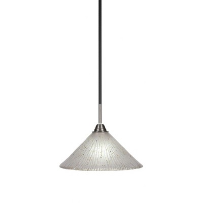 Collection: Paramount, Material: Steel, Finish Color: Matte Black/Brushed Nickel, Width: 5.5", Height: 15.25", Lamping Type: Incandescent, Number Of Bulbs: 1, Wattage: 100 Watts, Dimmable: No, Moisture Rating: Dry Rated Desc: Paramount 1 Light Mini Pendant In Brushed Nickel Finish With 5.5" Black Fusion Glass, Material: Steel, Finish Color: Matte Black/Brushed Nickel, Width: 5.5", Height: 15.25", Lamping Type: Incandescent, Number Of Bulbs: 1, Wattage: 100 Watts, Dimmable: No, Moisture Rating: Dry Rated-Paramount - 1 Light Mini Pendant-15.25 Inches Tall and 5.5 Inches Wide-Matte Black/Brushed Nickel Finish-Black Fusion Glass Color