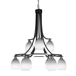 Toltec Lighting Paramount 9 - Light Chandelier in Matte Black/Brushed Nickel with 5" White Linen Shade