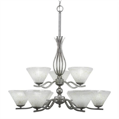 Toltec Lighting Revo 9 - Light Chandelier in Aged Silver with 7" Gold Ice Shade
