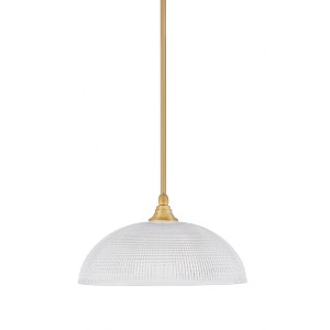 Toltec Lighting Stem 1 - Light Pendant in New Aged Brass with 13" Clear Ribbed Shade