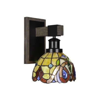 Collection: Tacoma, Material: Steel, Finish Color: Black/Painted Wood, Width: 4.5", Height: 10.75", Depth: 6.25", Backplate Width: 4.5", Backplate Length: 7.75", Lamping Type: Incandescent, Number Of Bulbs: 1, Wattage: 100 Watts, Moisture Rating: Damp Rated, Desc: Tacoma 1 Light Wall Sconce In Matte Black & Painted Distressed Wood-look Metal With 4.5� Clear Bubble Glass,-Tacoma - 1 Light Wall Sconce-10.75 Inches Tall and 4.5 Inches Wide