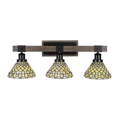 Collection: Tacoma, Material: Steel, Finish Color: Black/Painted Wood, Height: 10.75", Length: 15", Depth: 6.25", Backplate Width: 7.75", Backplate Length: 4.5", Lamping Type: Incandescent, Number Of Bulbs: 2, Wattage: 100 Watts, Moisture Rating: Damp Rated, Desc: Tacoma 2 Light Bath Bar In Matte Black & Painted Distressed Wood-look Metal With 4.5� Clear Bubble Glass,-Tacoma - 2 Light Bath Bar-10.75 Inches Tall and Inches Wide