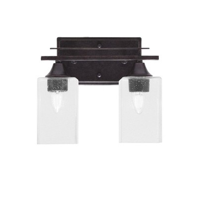 Toltec Lighting Uptowne 2 - Light Vanity in Dark Granite with 4.5" Square Clear Bubble Shade