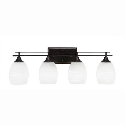 Collection: Uptowne, Material: Steel, Finish Color: Dark Granite, Height: 9.5", Length: 27", Depth: 6.25", Backplate Width: 8", Backplate Length: 5", Lamping Type: Incandescent, Number Of Bulbs: 4, Wattage: 60 Watts, Dimmable: No, Moisture Rating: Damp Rated, Desc: Uptowne 4 Light Bath Bar Shown In Aged Silver Finish With 5� White Linen Glass,-Uptowne - 4 Light Bath Bar-9.5 Inches Tall and Inches Wide-Dark Granite Finish-Cayenne Linen Glass Color