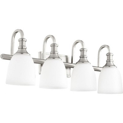 Collection: Vintage, Material: Steel, Finish Color: Aged Silver, Width: 42.75", Height: 10.5", Depth: 9.25", Backplate Width: 5", Lamping Type: Incandescent, Number Of Bulbs: 4, Wattage: 60 Watts, Dimmable: No, Moisture Rating: Damp Rated Desc: Vintage 4 Light Bath Bar Shown In Aged Silver Finish with 7" Clear Bubble Glass, Material: Steel, Finish Color: Aged Silver, Width: 42.75", Height: 10.5", Depth: 9.25", Backplate Width: 5", Lamping Type: Incandescent, Number Of Bulbs: 4, Wattage: 60 Watts, Dimmable: No, Moisture Rating: Damp Rated-Vintage - 4 Light Bath Bar-10.5 Inches Tall and 42.75 Inches Wide-Aged Silver Finish-White Muslin Glass Color