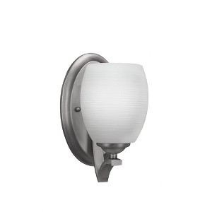 Collection: Zilo, Material: Steel, Finish Color: Dark Granite, Width: 5", Height: 9.75", Depth: 8.25", Backplate Width: 5.25", Backplate Length: 9", Lamping Type: Incandescent, Number Of Bulbs: 1, Wattage: 100 Watts, Dimmable: No, Moisture Rating: Damp Rated Desc: Zilo Wall Sconce Shown In Dark Granite Finish With 5" Black Fusion Glass, Material: Steel, Finish Color: Dark Granite, Width: 5", Height: 9.75", Depth: 8.25", Backplate Width: 5.25", Backplate Length: 9", Lamping Type: Incandescent, Number Of Bulbs: 1, Wattage: 100 Watts, Dimmable: No, Moisture Rating: Damp Rated-Zilo - 1 Light Wall Sconce-9.75 Inches Tall and 5 Inches Wide-Dark Granite Finish-White Linen Glass Color