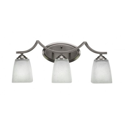 Collection: Zilo, Material: Steel, Finish Color: Graphite, Height: 9.75", Length: 22.5", Depth: 7.75", Backplate Width: 5.25", Backplate Length: 9", Lamping Type: Incandescent, Number Of Bulbs: 3, Wattage: 100 Watts, Dimmable: No, Moisture Rating: Damp Rated Desc: Zilo 3 Light Bath Bar Shown In Graphite Finish With 5" White Linen Glass, Material: Steel, Finish Color: Graphite, Height: 9.75", Length: 22.5", Depth: 7.75", Backplate Width: 5.25", Backplate Length: 9", Lamping Type: Incandescent, Number Of Bulbs: 3, Wattage: 100 Watts, Dimmable: No, Moisture Rating: Damp Rated-Zilo - 3 Light Bath Bar-9.75 Inches Tall and Inches Wide-Graphite Finish-White Linen Glass Color