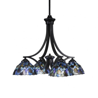 Collection: Zilo, Material: Steel, Finish Color: Matte Black, Width: 20.5", Height: 18.5", Chain Length: 48", Lamping Type: Incandescent, Number Of Bulbs: 4, Wattage: 100 Watts, Dimmable: No, Moisture Rating: Dry Rated Desc: Zilo 4 Light Chandelier Shown In Dark Granite Finish With 7� Roman Jewel Art Glass, Material: Steel, Finish Color: Matte Black, Width: 20.5", Height: 18.5", Chain Length: 48", Lamping Type: Incandescent, Number Of Bulbs: 4, Wattage: 100 Watts, Dimmable: No, Moisture Rating: Dry Rated-Zilo - 4 Light Chandelier-18.5 Inches Tall and 20.5 Inches Wide-Matte Black Finish-Roman Jewel Art Glass Color