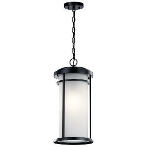Toman creates a simple interpretation of Arts and Crafts style with its outdoor pendant. This fixture enhances your curb-appeal with its use of a Black finish and satin etched cased opal glass. Chain Length: 72.00 Material: Aluminum, Finish Color: Black, Width: 10", Height: 21.25", Chain Length: 72", Lamping Type: Incandescent, Number Of Bulbs: 1, Wattage: 150 Watts, Moisture Rating: Damp Rated