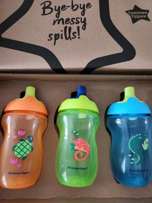 [This review was collected as part of a promotion.] After searching for a leak proof sippy cup for my growing toddler, I received this set of three Tommee Tippee sippy cups. At first glance, they are the perfect size for a full cup of water, juice or milk. The bright colors and characters attract my toddler who has been learning his colors recently. The straw shaped spout is leak proof and very simple and soft for my teething toddler to use. I would recommend this to others who are transitioning from bottle to sippy cups