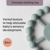 - Round silicone teething ring: Specially designed teether to gently massage sore gums and teeth, with a varied texture to help stimulate baby's sensory development from 3 months