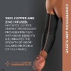 It runs VERY large and offers no compression. I cannot speak to the validity of the copper because it is not tight enough to compress and rolls down from the top because it is not tight enough. The material is soft and it looks nice but if you want a true compression sleeve this is not it.