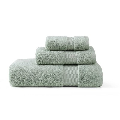 The Tommy Bahama Lago Palm towel set is self-reversing, featuring a palm leaf design in sage green and white. Made with yarn dyed cotton terry each towel is decorative, soft, luxurious, and medium weight. Constructed in high quality cotton, this perfect towel set will seamlessly bring a pop of color and style to your home. This 2-piece towel set includes two bath towels that measure: 58" X 28". Upgrade your entire bathroom with our set, which comes with 2 bath sheet towels. Machine washable for easy care.