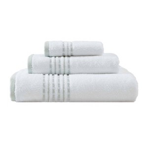 [This review was collected as part of a promotion.] This towel set has a timeless and effortless look that goes so nicely with my bathroom decor. I love that the towels are super soft 100% cotton that are very absorbent. The three sizes of towel are nice and convenient for any bathroom. The grey trim is subtle and not something I will tire of.