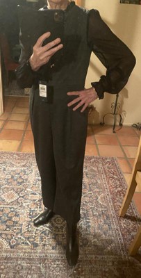 [This review was collected as part of a promotion.] My TOMMY HILLFIGER Woman’s Black Tie- neck Cropped Jumpsuit is so attractive. I am happy to say this jumpsuit runs true to size. I now have the perfect feminine outfit to wear on Christmas. I really appreciate the feminine look of the super cute yet dressy look of the ruffed mock tie neck and long chiffon sleeves.. My jumpsuit is extremely comfortable and the long zipper in the back makes for ease of putting on. I know I will look super good wherever I wear this jumpsuit. Thank you for fine quality.