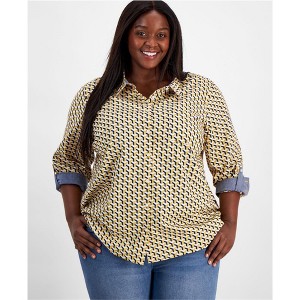 Tommy Hilfiger Womens Printed Roll Tab Button Up Shirt - 1 of 1