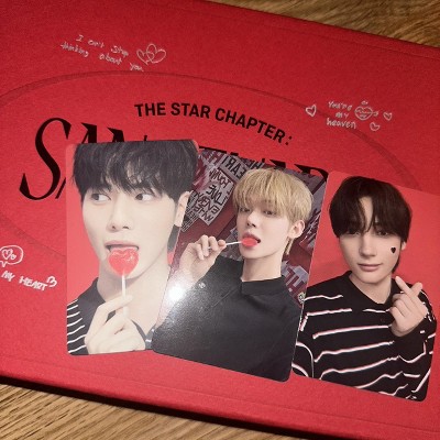 - TXT is back with mini album The Star Chapter: SANCTUARY. KNIGHT: CD, Photobook (100p), Lyric Book (16p), Sticker, Poster, Postcard, Photo Card (rdm 1 of 5) & License Card (rdm 1 of 5). SAVIOR: CD, Envelope, Book Frame, Photobook (148p), Lyric Book (20p), Sticker, Poster, Postcard, Photo Card (rdm 1 of 5) & Ice Piece Card (rdm 1 of 5). LOVER: CD, Envelope, Outbox, Booklet (64p), Lyric Book (16p), Sticker, Photo Strip, Poster, Post Card, Photo Card (rdm 1 of 5) & Heart Card (rdm 1 of 5).