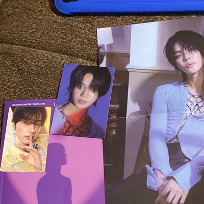- Starting from The Dream Chapter and then The Chaos Chapter, TOMORROW X TOGETHER (TXT) is opening the next with a Lullaby Version of their brand-new EP titled The Name Chapter: TEMPTATION. This Lullaby Compact Version will be available in five different designs. Contents of the album include items specific to each member: a CD, Cover, Photo Book (60 pages; random 1 of 5), Photo Card (random 1 of 5), Sticker, Post Card (random 1 of 5) and Folded Mini Poster. Dimensions: 142 x 199 x 10 mm.
