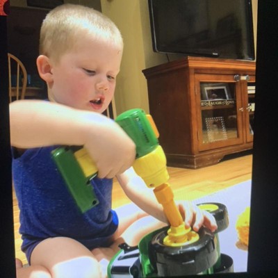 We love this John Deere tractor. It is very well made. My children took right to it. Perfect for little ones who like to tinker and take things apart. The drill makes a little noise, but too loud. Even my 7 year old plays with it from time to time.