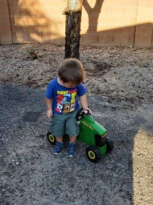 [This review was collected as part of a promotion.] This was perfect for a toddler, they loved it. It says 18+ but the active 1 yr loved it as much as the 3 yr old. I don't know how long it will last outside on the sidewalk & dirt but the kids were scooting along like the were big boys in real tractors!