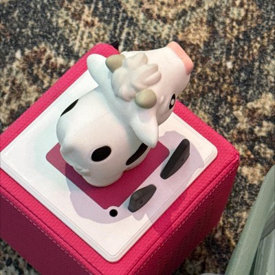 [This review was collected as part of a promotion.] This is SO cute. My two and a half year old is really into animals right now, especially farm animals. This Tonies cow is perfect for little kids. It is small and squishy and snaps on very easily. It is made out of a rubbery material and feels hollow so it is light weight. The sound is clear and it is not a choking hazard for small children!
