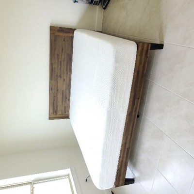 Renew your bedroom with this Tonja Wood Platform Bed by Zinus. Wood finished headboard and frame with metal interior frame support. And speaking of support, a solid wood frame will easily hold your mattress with no box spring required thanks to reliable wood slats. What could possibly make this bed better? All the tools, parts and instructions you need are packed up and shipped straight to your door in one box for super simple assembly. And a 5-year warranty takes all the stress out of this purchase so you can sleep soundly at night. Simply put, this platform bed has the top quality craftsmanship you love and can rely on for years to come, without breaking the bank.