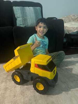 [This review was collected as part of a promotion.] My son absolutely love this might dump truck. The quality of the dump truck is amazing. It is made from steel and quite heavy. It is totally safe for the kid to play with as it is quite sturdy. This is a big dump truck and quality is beyond my expectations. This is the perfect gift for the kid.