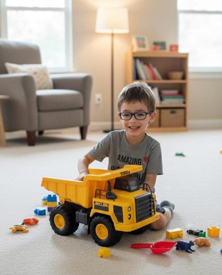 [This review was collected as part of a promotion.] This dump truck is awesome. It’s huge and bold. It has built high quality and super strong. The wheels are designed for heavy duty play. Super cool.