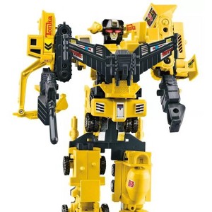 Transformers robots have always been -- More Than Meets the Eye -- but now, through the Transformers Collaborative, fans can experience these larger than life characters as they team-up, mash-up, and meet up with other characters, teams, and people who share this same special quality.Worlds collide in this Transformers-Tonka mash-up pack Enemies donrsquot stand a chance when yoursquore built to take on the toughest jobs Tonka construction vehicles take on new forms as Transformers robots that combine to form the mighty Tonkanator Figures convert from robot to construction vehicle mode in 4-5 steps. Autobot Mega Dozer converts to bulldozer mode, Power Digger converts to digger mode, Autobot Skyhook converts to crane mode, Mega Hauler converts to mighty dump truck mode, Motormix converts to cement mixer mode, and Motor Load converts to front end loader mode. Features classic yellow deco inspired by Tonka construction toys.