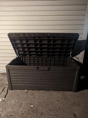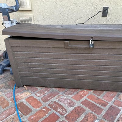 [This review was collected as part of a promotion.] I recently received the Toomax Florida Heavy Duty 145 Gallon Novel Resin Outdoor Storage Box in brown, and it has been a fantastic addition to our backyard. The box is incredibly sturdy and spacious, holding all of our outdoor cushions and patio essentials no problem. Assembly was straightforward, and the instructions were clear. I appreciate the lockable lid for added security and peace of mind. The resin material is weather-resistant, so I don’t worry about it deteriorating over time. Plus, the brown color blends beautifully with our outdoor decor. Overall, I’m very impressed with the storage box and highly recommend it to anyone needing extra outdoor storage.