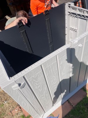 This shed is very poorly made. An hour after being assembled, the plastic roof hinge snapped and broke. Less than 4 weeks later the door hinges snapped and the door fell off. The back wall is not solid plastic like the doors and side walls, it is flimsy panels that barely hold. Any pressure and they will pop out the back.