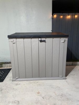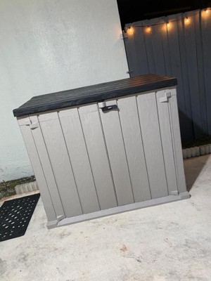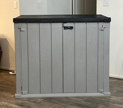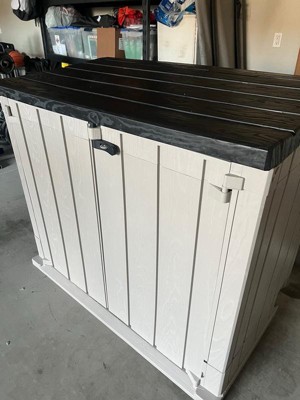 [This review was collected as part of a promotion.] For what ever reason I thought this storage was wood but it’s plastic. It is in deed heavy duty and easy to put together. It’s pretty plug and fit quite a few things inside. It pretty easy so figure out. I am not a fan of putting things together and I got it together in about an hour. It’s very stylish and looks great in my back yard. I would definitely recommend this storage to friends and family.