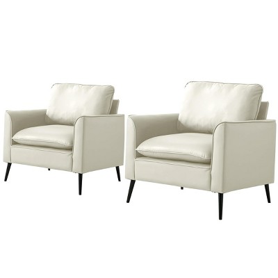 Top Grain Leather Upholstery Solid Wood Accent Chair with Attached Cushions, High-Density Foam Seat and Durable Frame